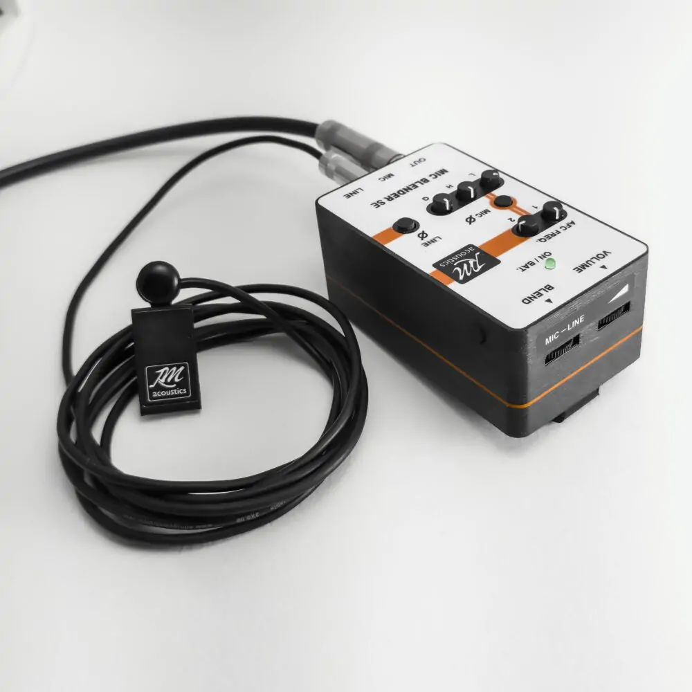 – Mic Blender SE. Clip-on microphone, preamplifier and signal processor with blending options.